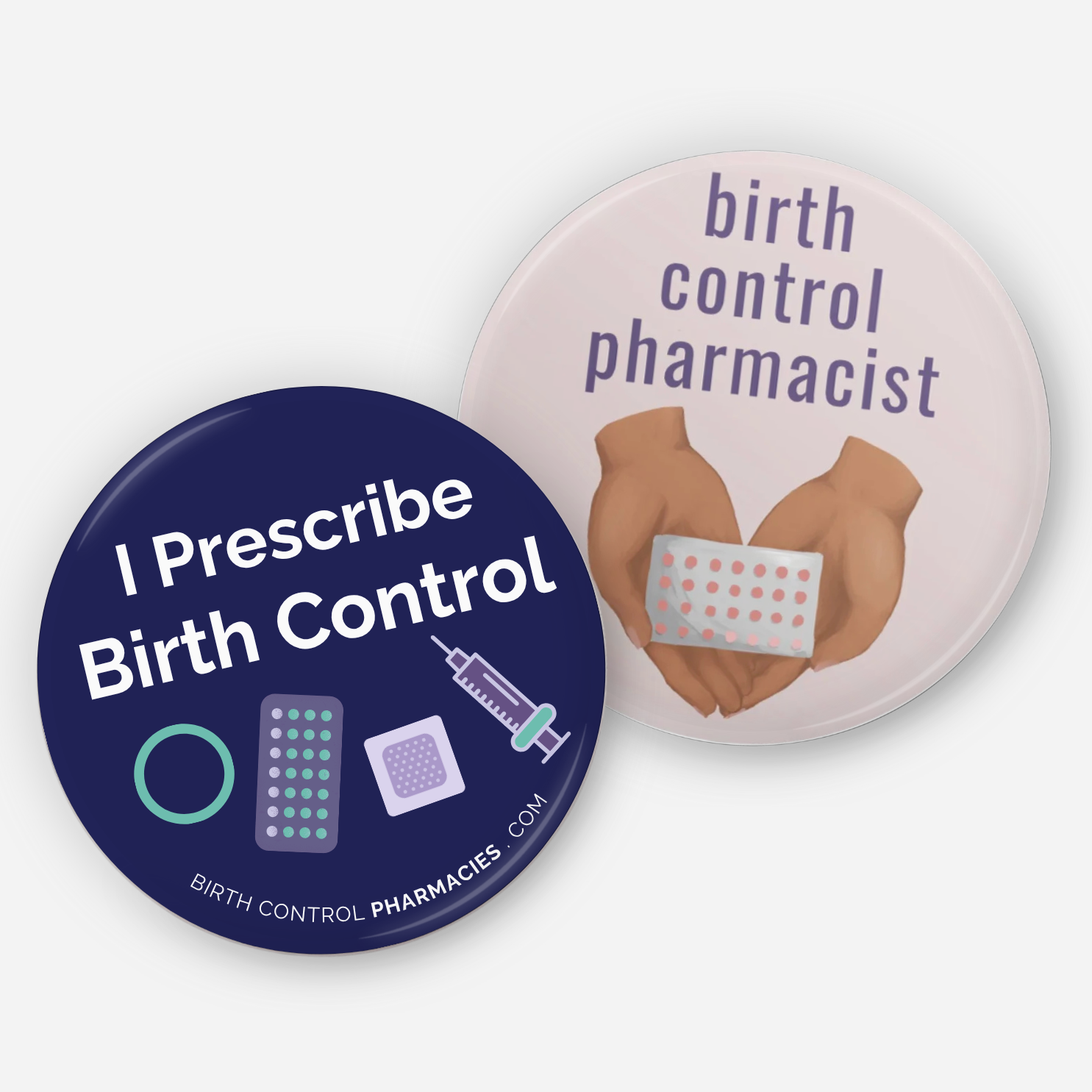 2.25” round buttons. Can be worn by pharmacists on their white coats to raise awareness about birth control services.
